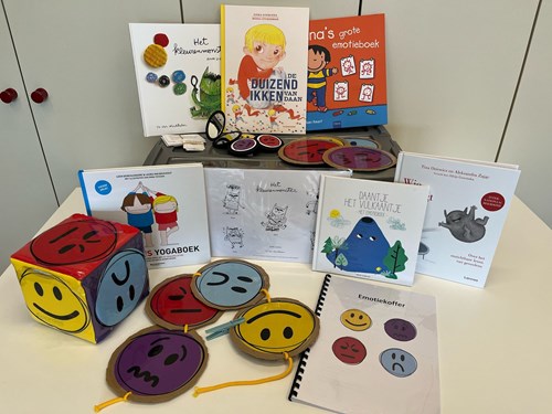 Er zitten ook nog verschillende boeken in de koffer die over gevoelens gaan en die je samen met je kind kan lezen om zo het thema gevoelens bespreekbaar te maken.